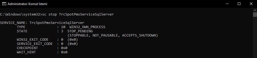 Servisi silmek isterseniz durdurma kodunu çalıştırdıktan sonra aşağıdaki kodu kullanarak servisi silebilirsiniz.