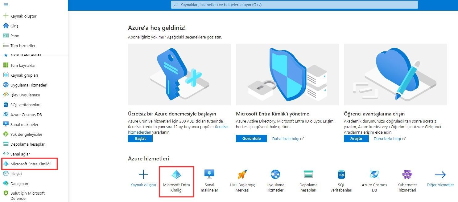Sol menüde veya ekranın ortasında bulunan “Microsoft Entra ID” butonuna tıklayın.