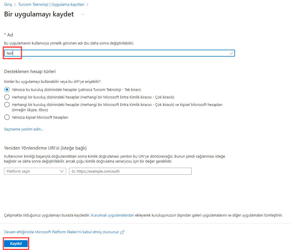 Office 365 tarafından kullanıcı bilgilerine erişebilmek için Azure Portal üzerinden bazı ayarlar yapmamız gerekiyor.