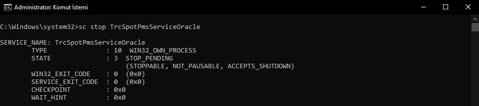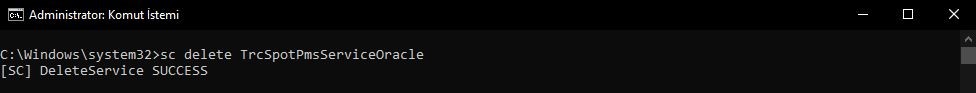 Servisi silmek isterseniz durdurma kodunu çalıştırdıktan sonra aşağıdaki kodu kullanarak servisi silebilirsiniz.