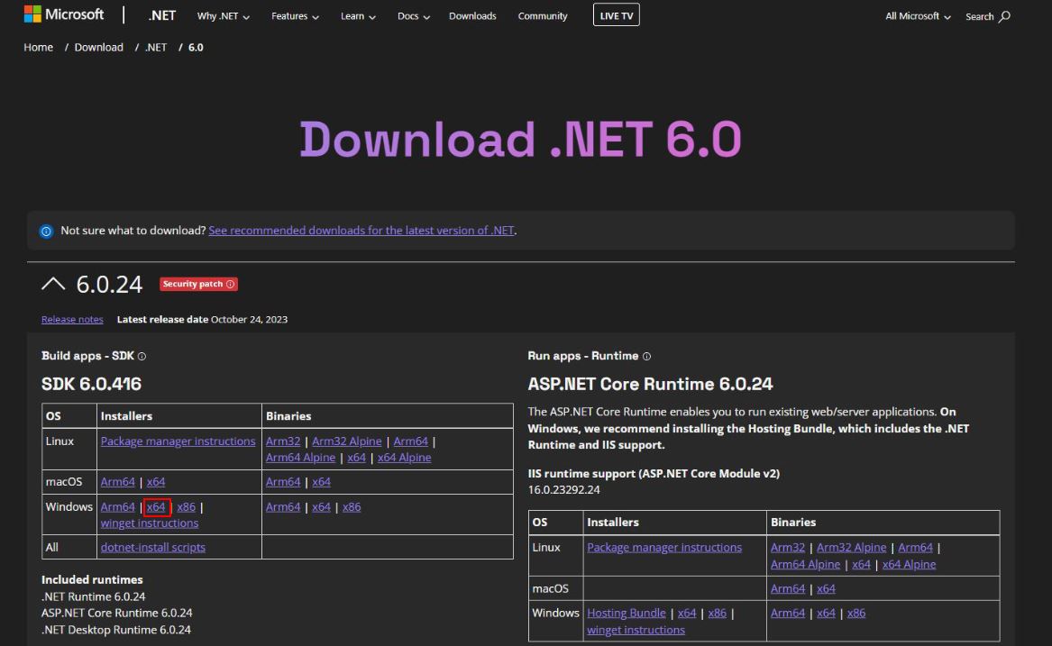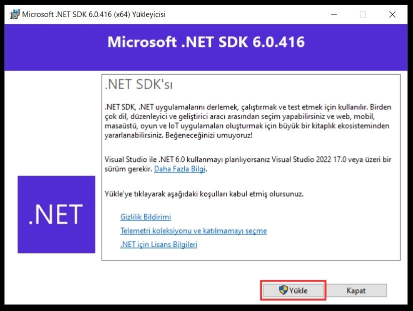 İlk olarak uygulamanın çalışabilmesi için gerekli olan kurulumları yapmamız gerekiyor. https://dotnet.microsoft.com/en-us/download/dotnet/6.0 adresine giderek gerekli dosyayı indirin.