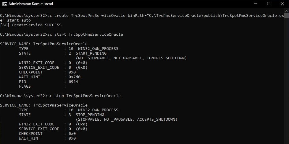 sc create TrcSpotPmsServiceOracle binPath="C:\TrcPmsServiceOracle\publish\TrcSpotPmsServiceOracle.exe" start=auto