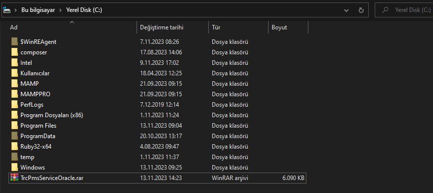 XXX adresine giderek “TrcPmsServiceOracle” isimli rar dosyasını indiriniz. Bu dosyayı indirdikten sonra kurulumu yapmak istediğiniz diskin içine rar dosyasını atın.